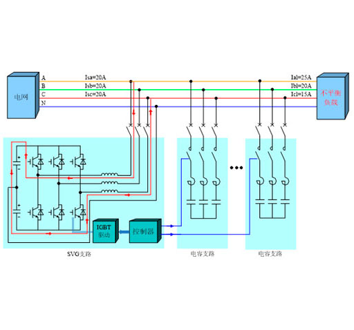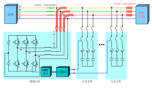 ? 與固定電容器補償聯(lián)動,采用SVG的控制器,統(tǒng)一控制電容器的投切,既能減少體積又方便協(xié)調控制。